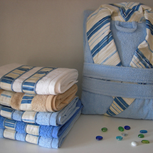 Fantastic look and excellent touch to your skin. Styled for your comfort after a relaxing shower. High absorbent and a smart way to dry off. Turns your bathroom into a luxurious ambiance. Made from combed cotton, carded cotton, 100% organic cotton, bamboo/cotton mixture, modal and micro cotton yarns.